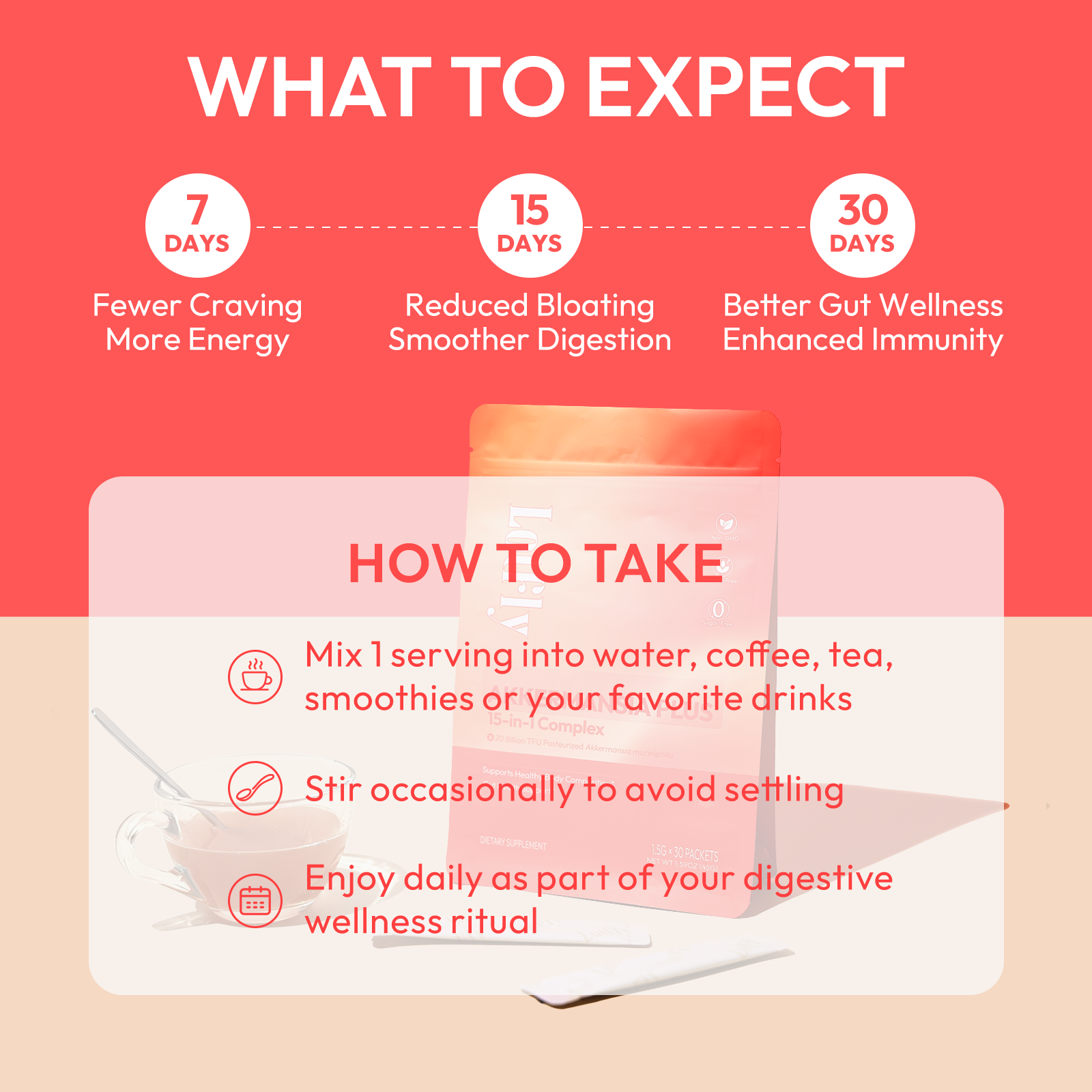 Akkermansia muciniphila is designed to support gut health for as long as it is included in your daily routine. Consistent use helps maintain microbiome balance and digestive well-being.